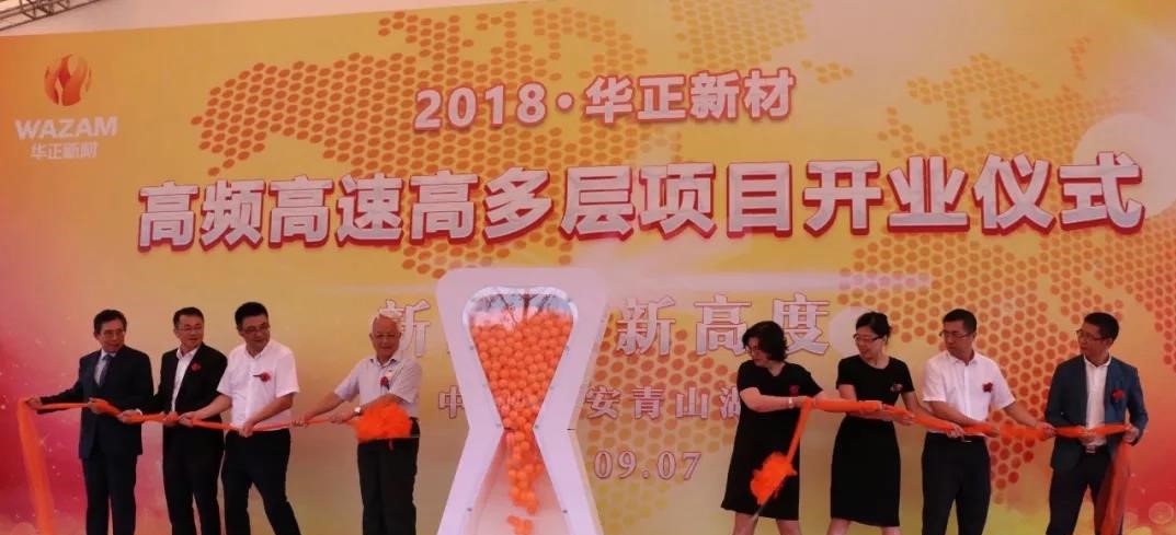 9月7日,以“新時代,新高度”為主題的華正新材高頻、高速、高多層項目開業典禮在青山湖工廠隆重舉行。